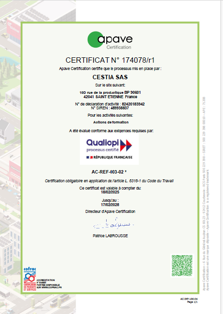 Cestia est un organisme référencé Qualiopi.
